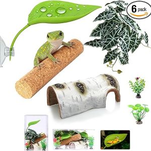 Crested Gecko Tank Accessories, Reptile Decor,Reptile Hanging Plants Vines with Coconut Shell Ladder Hideout Hermit Crab Decor for Lizard, Chameleon Cage, Snakes, Hermit Crab, Leopard Gecko (Decor-1)