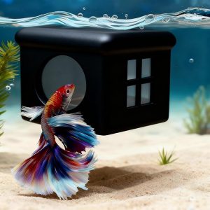Black Floating Betta Fish Hideout with Window – Sleek 3D Fish Breeding Box & Shelter – Floating Feeding Platform for Betta Tanks – Rest Cave Decor for Small Aquariums (3.67″x2.87″x2.16″)