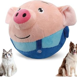 Active Moving Pet Plush Toy, 2025 New Squeaky Moving Dog Ball Toy Interactive Puppy Toys, Rechargeable Cartoon Plush Bounce Talking Toys to Keep Them Busy (Blue Pig)