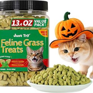 13.4 OZ Cat Treats for Indoor Cats Hairball Control Natural Salmon Healthy Cat Grass Treats Kitten Snacks Training Biscuits Catnip for Cats Dental Care