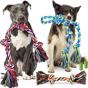 Heavy Duty Dog Toy for Aggressive Chewers – Tough Chew Toys for Large Dogs, Ideal for Tug-of-War & Teeth Cleaning, with 3 Rope Toys & 2 Dog Bags