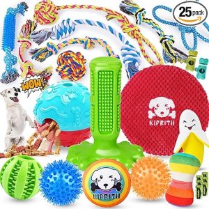 KIPRITII 25 Pack Various Puppy Dog Toys for Teething, Entertainment & Interaction, Puppy Chew Toys Pack with Rope Toy, Treat Balls and Dog Squeaky Toys for Puppies & Small Dogs
