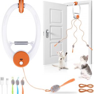 Interactive Cat Toys for Indoor Cats, Automatic Electric Flying Bird Feather Wand Toy, Best Kitten & Adult Cat Enrichment Toy Hanging Electric Kitty Toys for Bored Cats, Orange