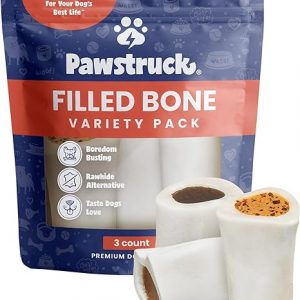 Pawstruck Small 3” Filled Dog Bones Variety Pack – Peanut Butter, Cheese & Bacon, Beef Flavors – Made in USA Long Lasting Stuffed Femur Treat for Aggressive Chewers – Pack of 3 – Packaging May Vary