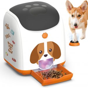 Dog Puzzle Feeder Toy, Automatic Dogs Treat Dispenser,Interactive IQ Training, Dog Slow Feeder,Remote Button Treat Dispenser,All Breeds,Large Capacity with Light (Orange)