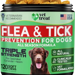 VET TREAT’s Flea and Tick Prevention for Dogs Chewables -Made in USA- Natural Dog Flea and Tick Treatment – Oral Flea Pills – Vet Recommended Flea and Tick Chews – All Breeds & Sizes – 120 Soft Treats